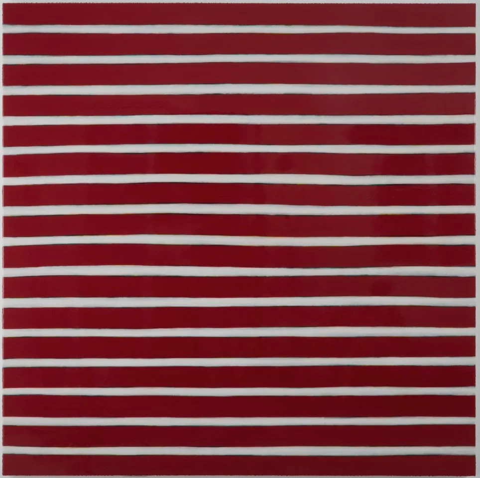 Campbell’s Line Segments series is an ongoing exploration, presenting layered bands of meticulously applied paint that converge into abstract and geometric formations. These intricate patterns offer nuanced experiences of depth, space, shadow, and vibrant color, captivating viewers with their dynamic visual interplay.