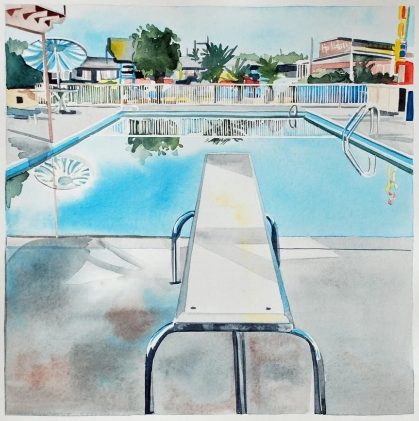 Amy Park, Ed Ruscha's Nine Pools and a Broken Glass (detail), watercolor on paper, 28 x 22 in (71.1 x 55.8 cm). Courtesy of Kopeikin Gallery.